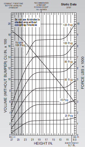 The static data chart below is also referred to as the load/deflection (L/D) curve for an air spring.
